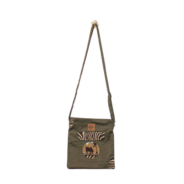 Signature Safari Unisex Black Canvas Sling Bags with Rhino